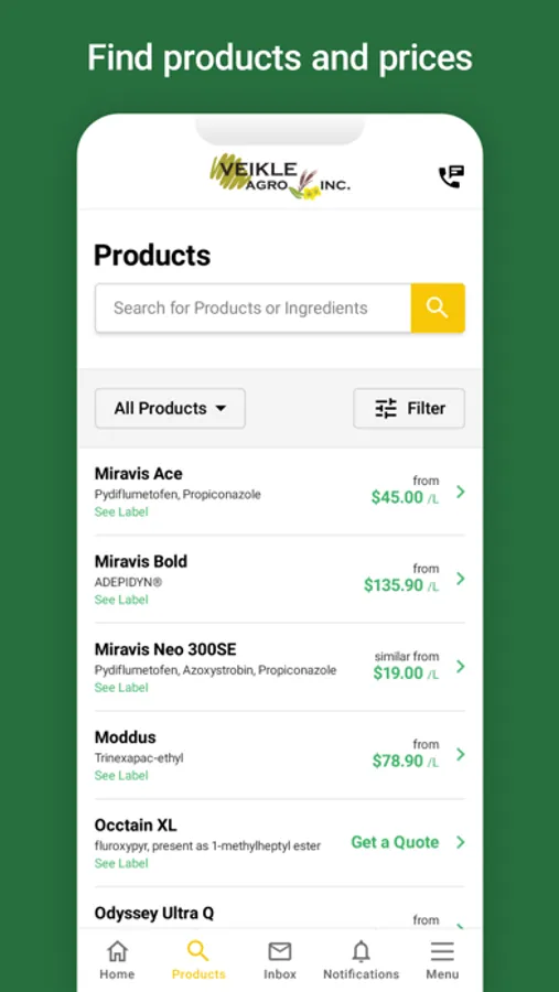 • Looking for a specific product? Search by product name or ingredient to find exactly what you need. View label information or get pricing information