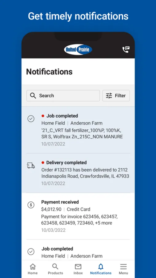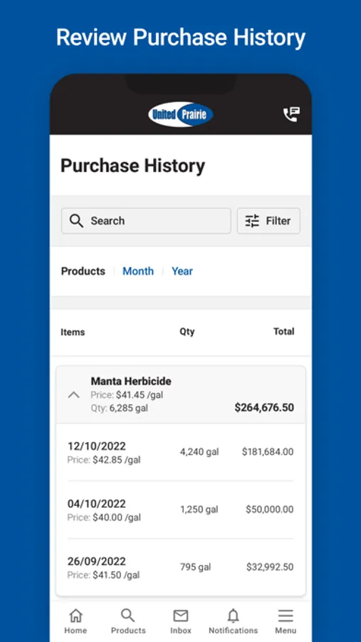 • Easily look up all of your United Prairie account information. Find all of your previous purchases or view and pay your invoices in a few clicks.