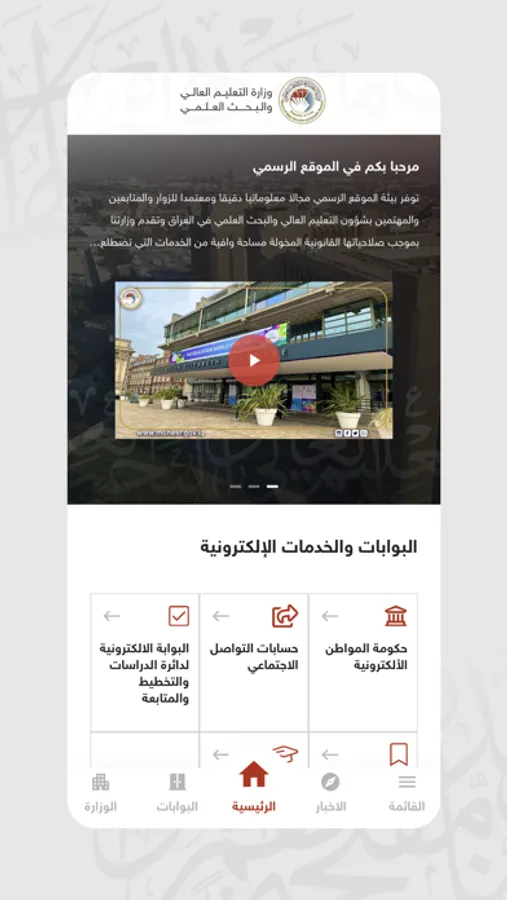 توفر بيئة التطبيق الرسمي مجالاً معلوماتياً دقيقاً ومعتمداً للمهتمين بشؤون التعليم العالي والبحث العلمي في العراق وتقدم وزارتنا بموجب صلاحياتها القانونية المخولة مساحة وافية من الخدمات التي تضطلع بها الدوائر الفنية والإدارية والثقافية المختصة وتصورات كاملة عن الجامعات العراقية ومراتبها ونشاطاتها وحضورها الأكاديمي المحلي والعالمي ومؤشرات البحث العلمي ونتائج التصنيفات الدولية.