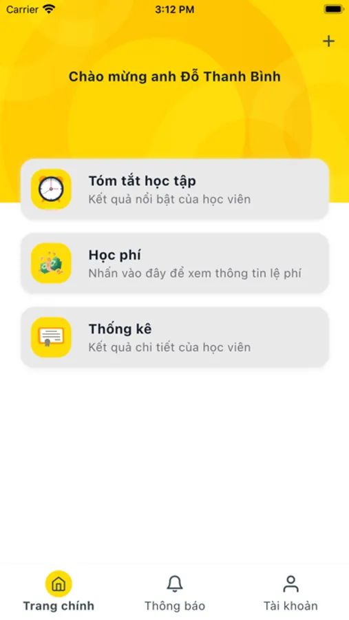 - Phụ huynh nhận ngay các thông báo về tình hình học tập của con: về điểm, chuyên cần, kết quả tự học và các sự kiện đặc biệt được trung tâm tổ chức trong khóa học của con