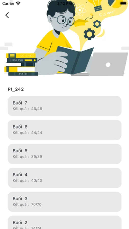 - Xem tổng quan lộ trình học của con, bao gồm: tên khóa học, số lượng buổi học, chủ đề ở mỗi buổi học