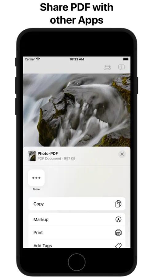 You can also share the PDF file with many Apps like AirDrop, Message, Mail, Books, etc.