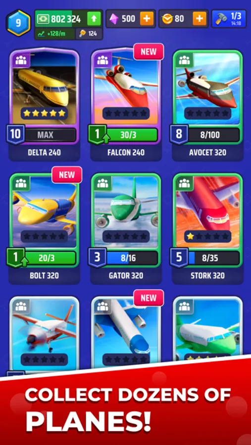 Unlock and collect iconic airplanes by completing the exciting challenges of Idle Airplane Tycoon!
