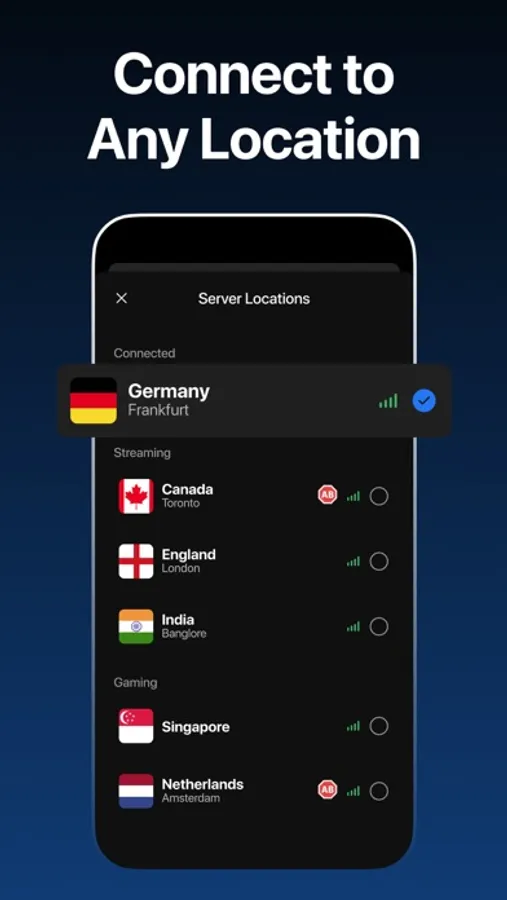 Turbo Fast VPN allows you a free VPN connection. Don’t forget to connect to Turbo Fast VPN when you are in public wifi. You can turn any public wifi to a secure connection by using Turbo Fast VPN and secure your personal data. Don’t worry! Free VPN servers of Turbo Fast VPN are still super fast. You can become Turbo Fast VPN pro member to connect to adblock servers which blocks the annoying ads for you. Download Turbo Fast VPN app for free now to connect super fast free VPN!