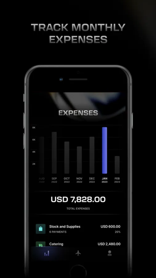 - View monthly categorized trip expenses in real-time: catering, aircraft stock & supplies