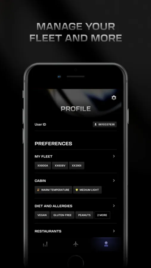 - Adjustable profile and preferences of aircraft, cabin settings and services.