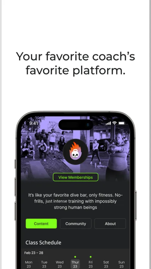 Within the Somble app, clients can sign in or create their account to find their favorite coach. From there, each client can interact with their favorite coach's content - like booking classes and events as well as chatting their coach directly. Clients can also opt-in to push notifications, so when they receive a chat back they're immediately notified.