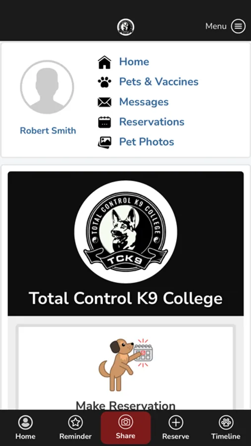 The Total Control K9 College App enables users to make reservations, purchase package credits, see and pay invoices, message with Total Control K9 College, see photos of their pets, and more. Employees of Total Control K9 College are able to manage the business and connect with customers. This app is made specifically for the customers and employees of Total Control K9 College.