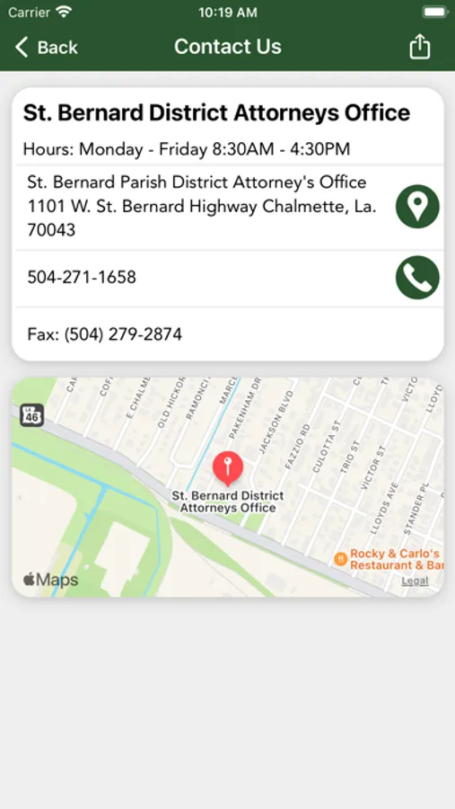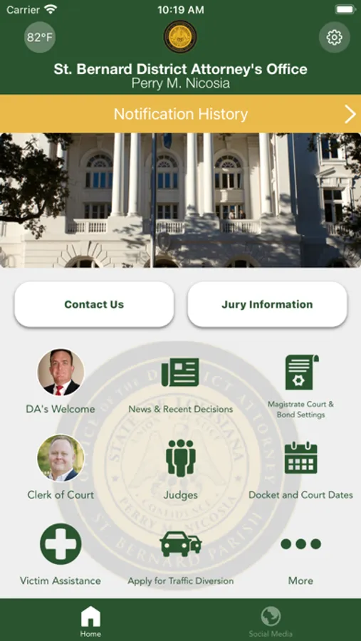 The St. Bernard District Attorney’s Office mobile application is an interactive app developed to help improve communication with area residents with features such as News and Recent Decisions, Victim Information, Docket and Court Calendar, and Court Contact Information.