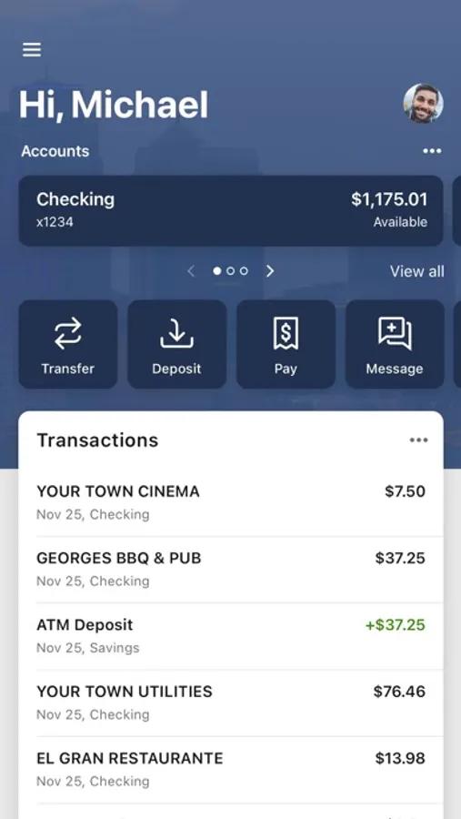 • Deposit checks in a snap by taking a picture of the front and back