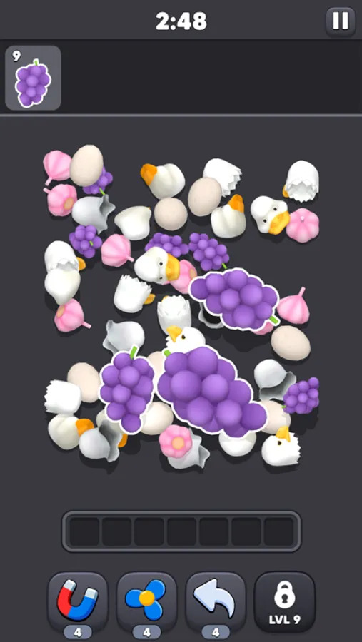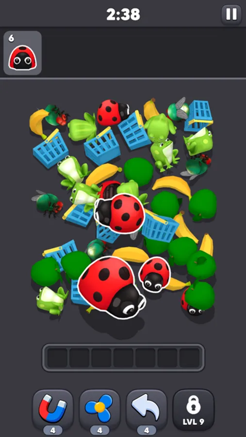 - Keep sorting and matching objects until you clear all tiles from the screen.