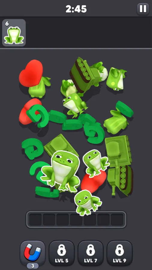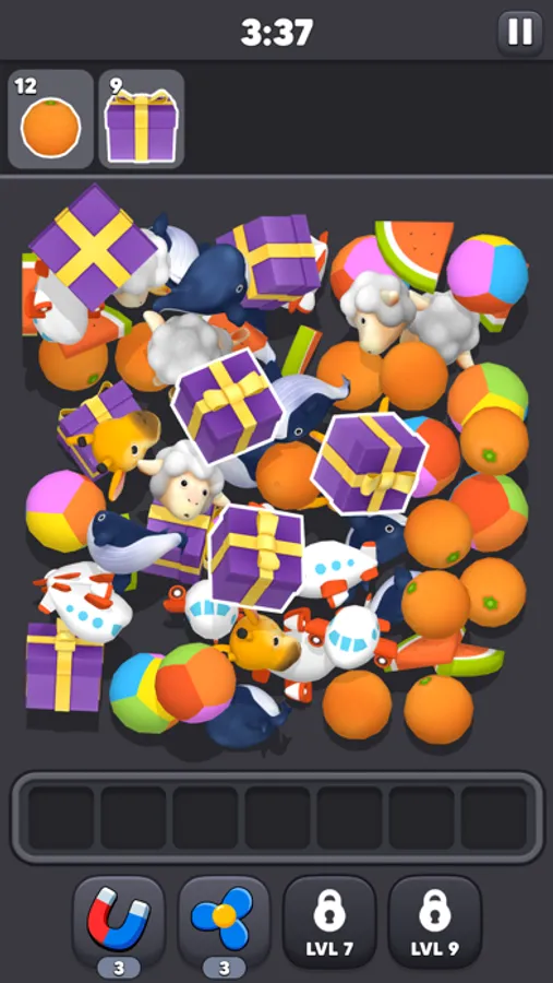 Your goal is to tap on three identical tiles and connect them into triples. Keep sorting and matching objects until you clear all tiles from the screen. Each level has a goal set at the start, so complete it within the given time limit to progress to the next level.