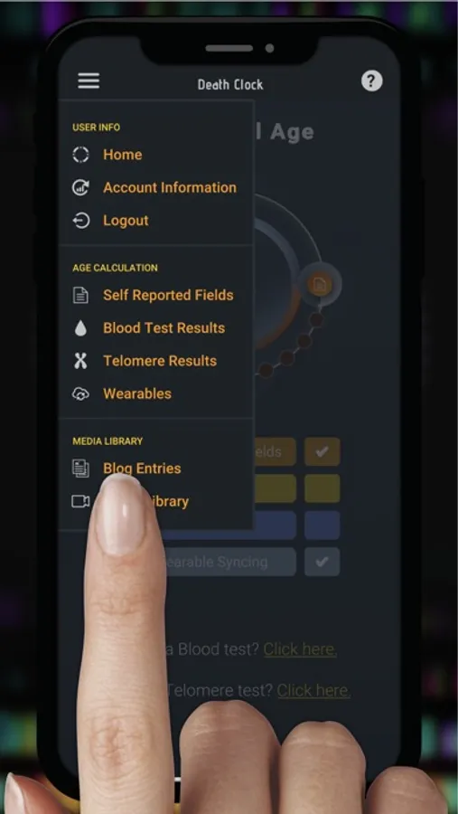 Our revolutionary algorithm uses data points from self-reported lifestyle information, blood test results, and other markers of biological age including telomere length and DNA methylation, as well as aggregated data from wearables that can be used to continuously track your biological age. These forms are easily accessible and editable so you can keep all of your data as current as possible with the click of a few buttons!