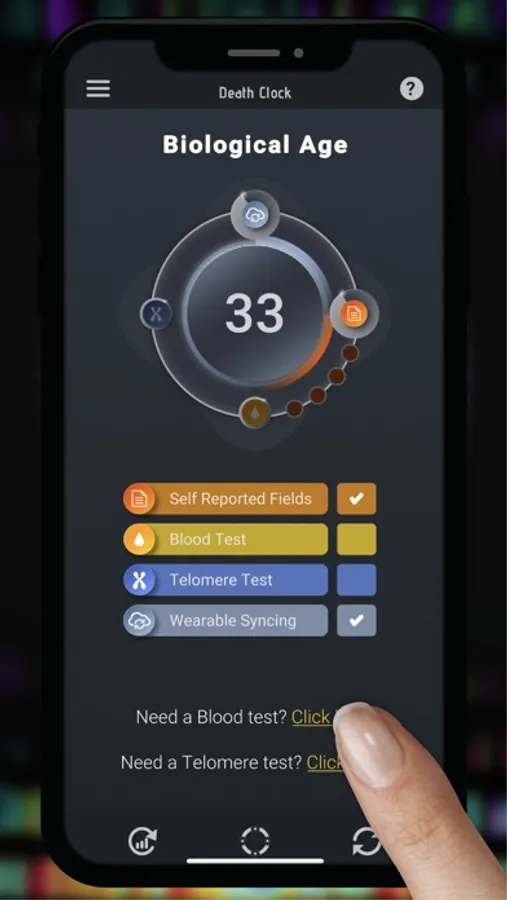 With DEATH CLOCK, you can uncover your biological age and track changes to it with every new lifestyle shift, test result, weight fluctuation, and year that goes by while gaining insights on science-based methods for extending your longevity from a leader in the field of regenerative medicine: Dr. Rand McClain.
