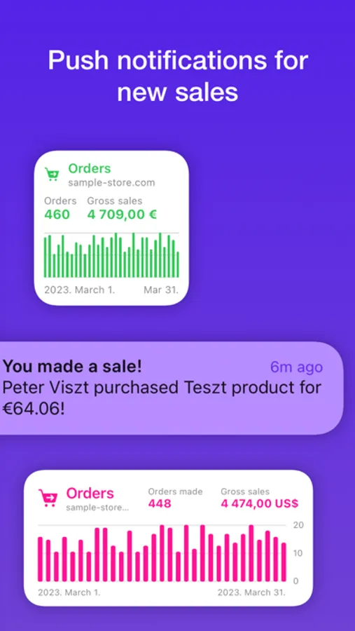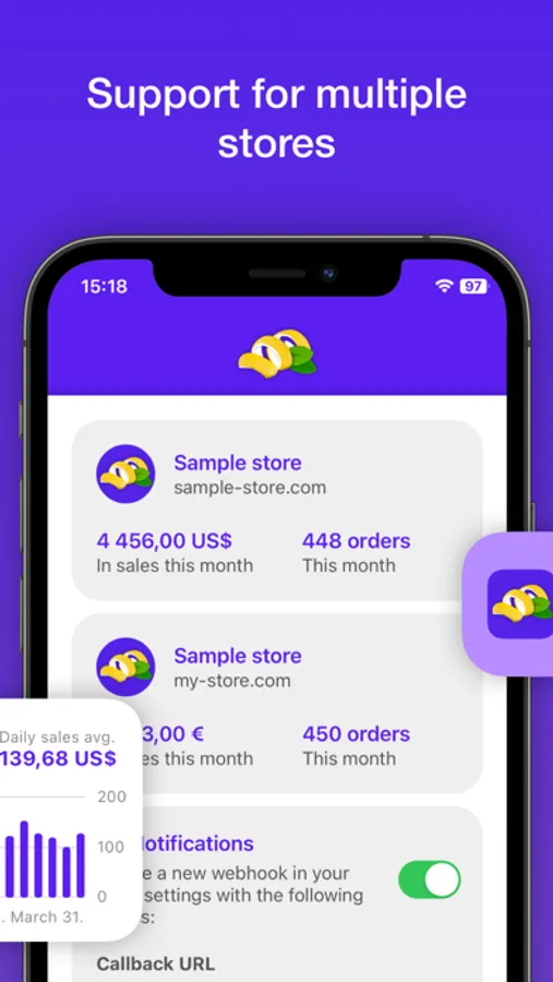 Please note that multiple store support, orders widget, push notifications and lock screen widgets are available in the PRO version, which is an in-app purchase addon.