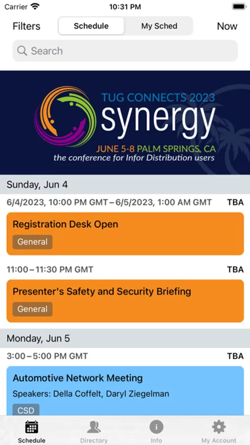 Conveniently browse the entire schedule for TUG CONNECTS 2023 | synergy. Get the key information of your event without ever having to crack open an event guide.