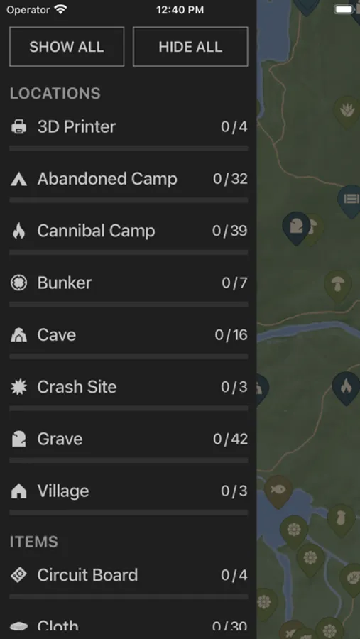 • Progress Tracker - Track your progression by marking items as found.