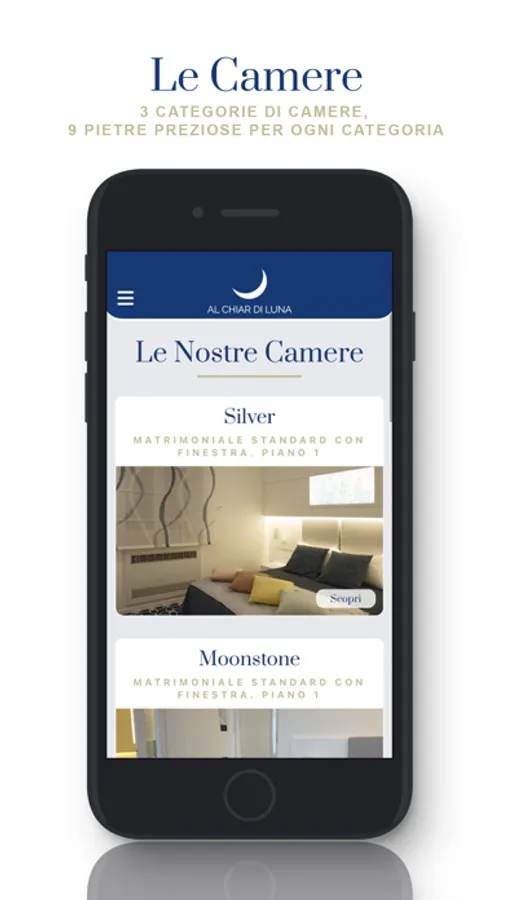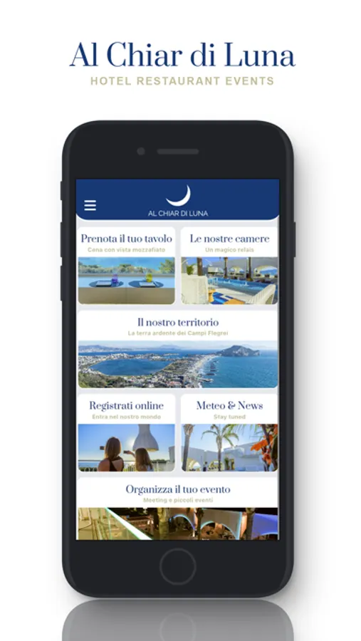 Scarica subito l’app di Al Chiar di Luna per scoprire il nostro mondo! Con l’app potrai prenotare un tavolo, immergerti in un virtual tour per scoprire tutti gli eleganti e moderni ambienti della location, visionare le camere e scoprire il territorio!