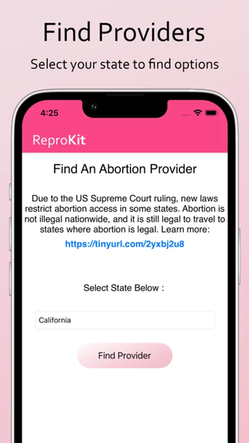 ReproKit aims to provide information and resources pertaining to women’s reproductive health and their abortion rights, including where to find abortion resources closest to them.