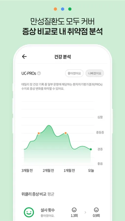 기존에 진단된 만성질환도 이제는 생활습관으로 같이 관리해보아요. 증상비교로 취약점도 분석하고 더 좋은 식이, 운동 습관을 만들어 나가요.