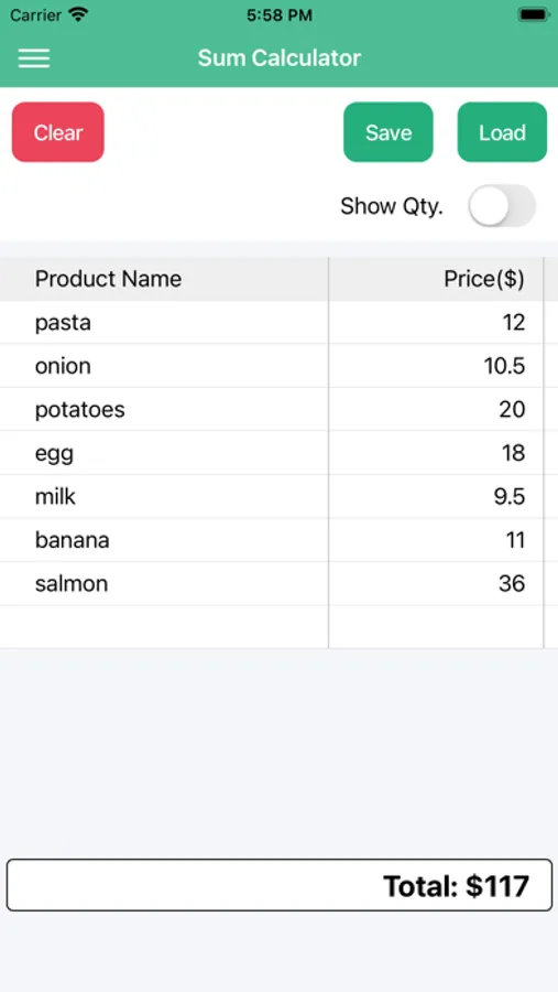It is a free app that can automatically calculate the total amount by taking a note of the product name and amount.