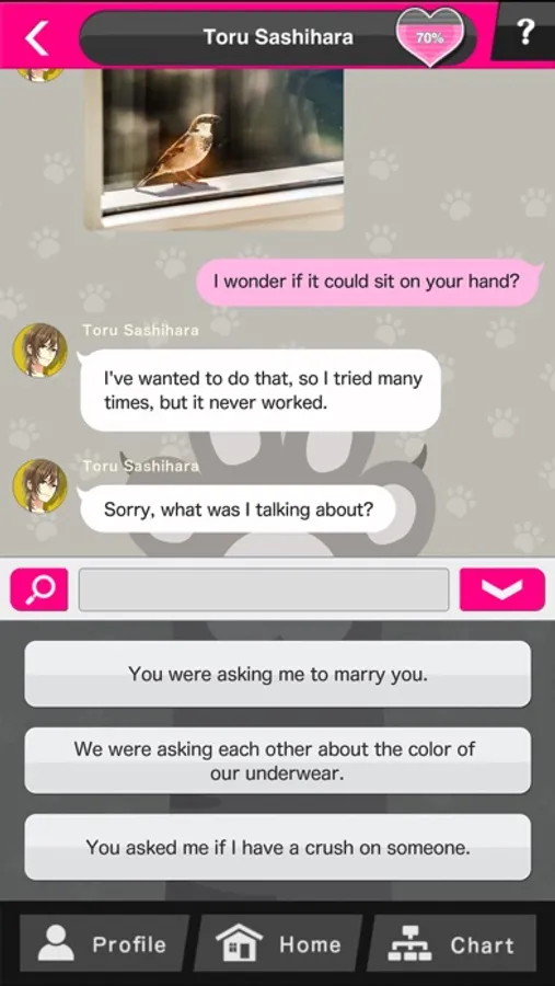 The story progresses depending on the replies you choose. Get closer to them and see how it ends!