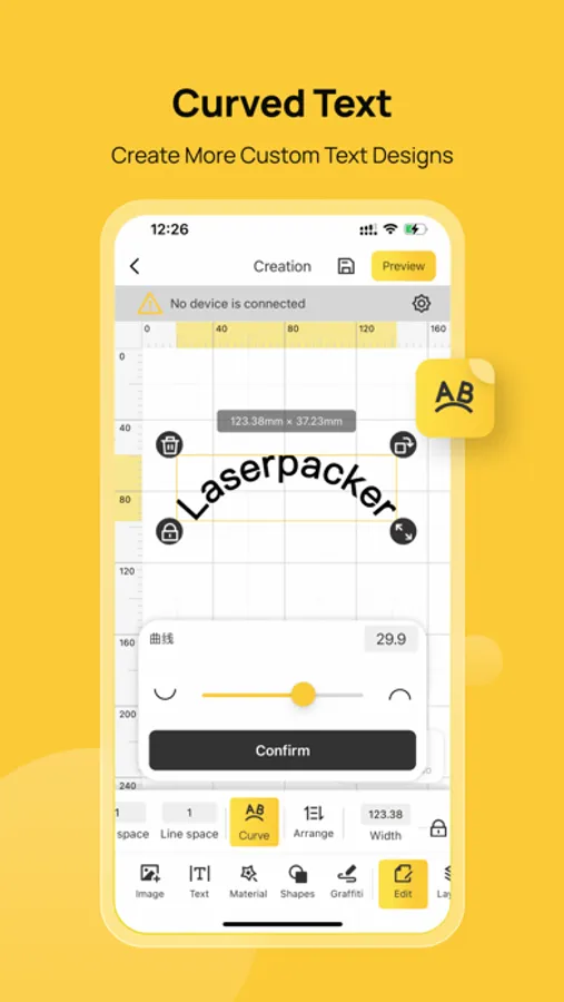 2. Use mobile app to control radium engraving equipment to engraving wood, plastic, leather, paper, fabric, felt paper, peel and other non-metallic and non-transparent light-absorbing materials or non-reflective coatings.
