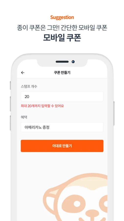 - 쿠폰 설정 기능을 활용하여 스탬프 개수 별 혜택을 설정할 수 있습니다.