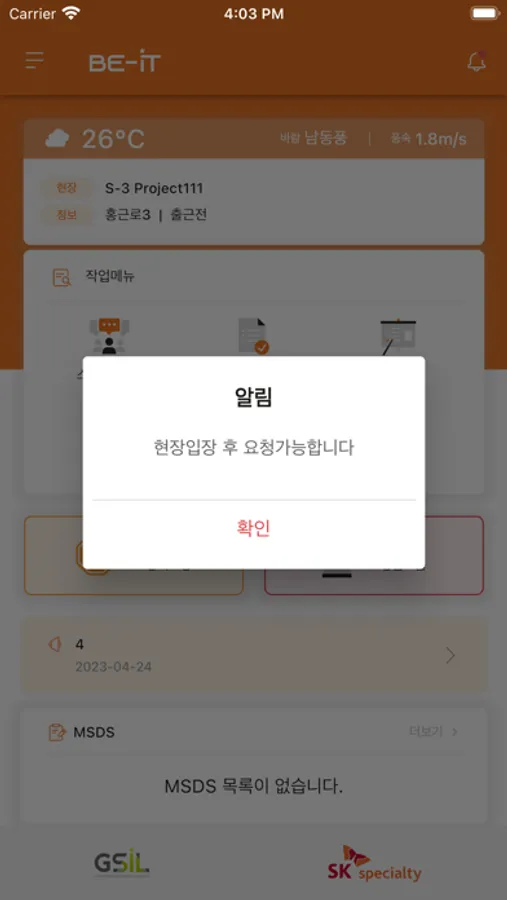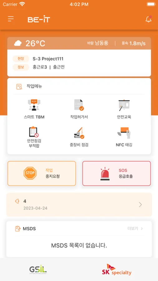 본 어플리케이션은 건설현장 근로자를 위해 개발된 앱입니다.