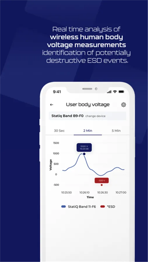 - Mobile app to visualize voltage data and change parameters on the StatIQ Band such as alarm thresholds and volume.