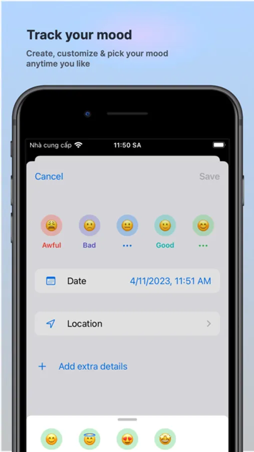 - Mood tracker: Create, customize & pick your mood anytime you like to track & understand your emotional state and improve your mental well-being
