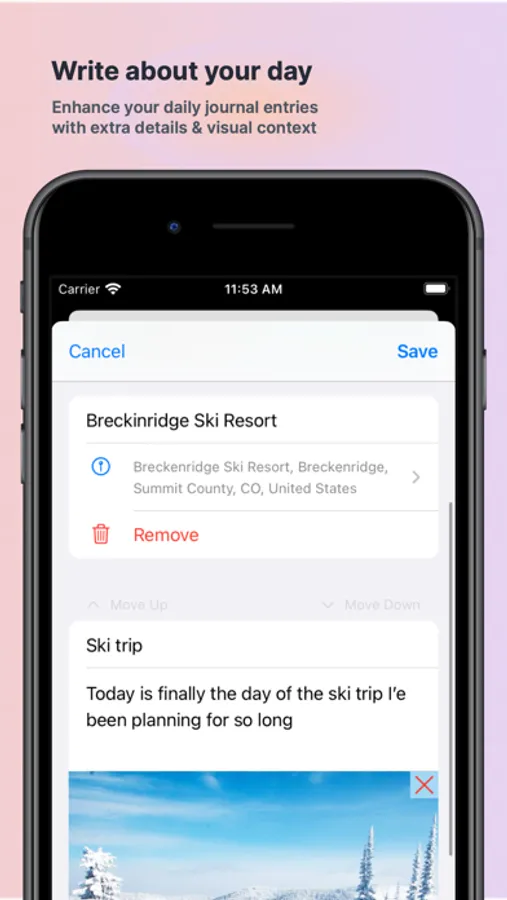 - Write about your day: Enhance your daily journal entries with visual context. Our app allows you to add photos to your entries and remember every detail