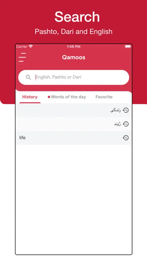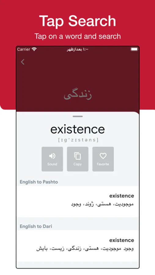 Qamoos have a multi-language "Tap Search" feature, which makes it easy to search faster by tapping on the translation of a word and searching again without typing the word.