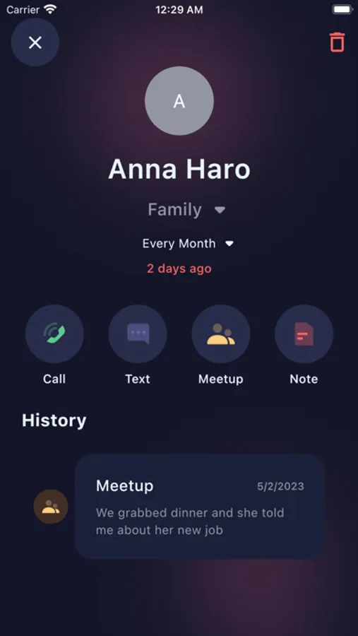 With Intently, you can set the frequency of check-ins for each contact based on your relationship's nature. Whether it's a weekly call to your best friend, a monthly catch-up with an old colleague, or daily texts to your significant other, Intently will keep you on track and ensure you're always there for the people who matter most.