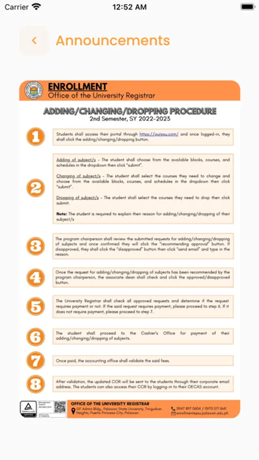 OECAS an online enrollment comfortable access system for Palawan State University Students.