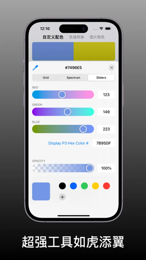 - 图片取色、自定义色卡、色值转换等强大工具使你如虎添翼