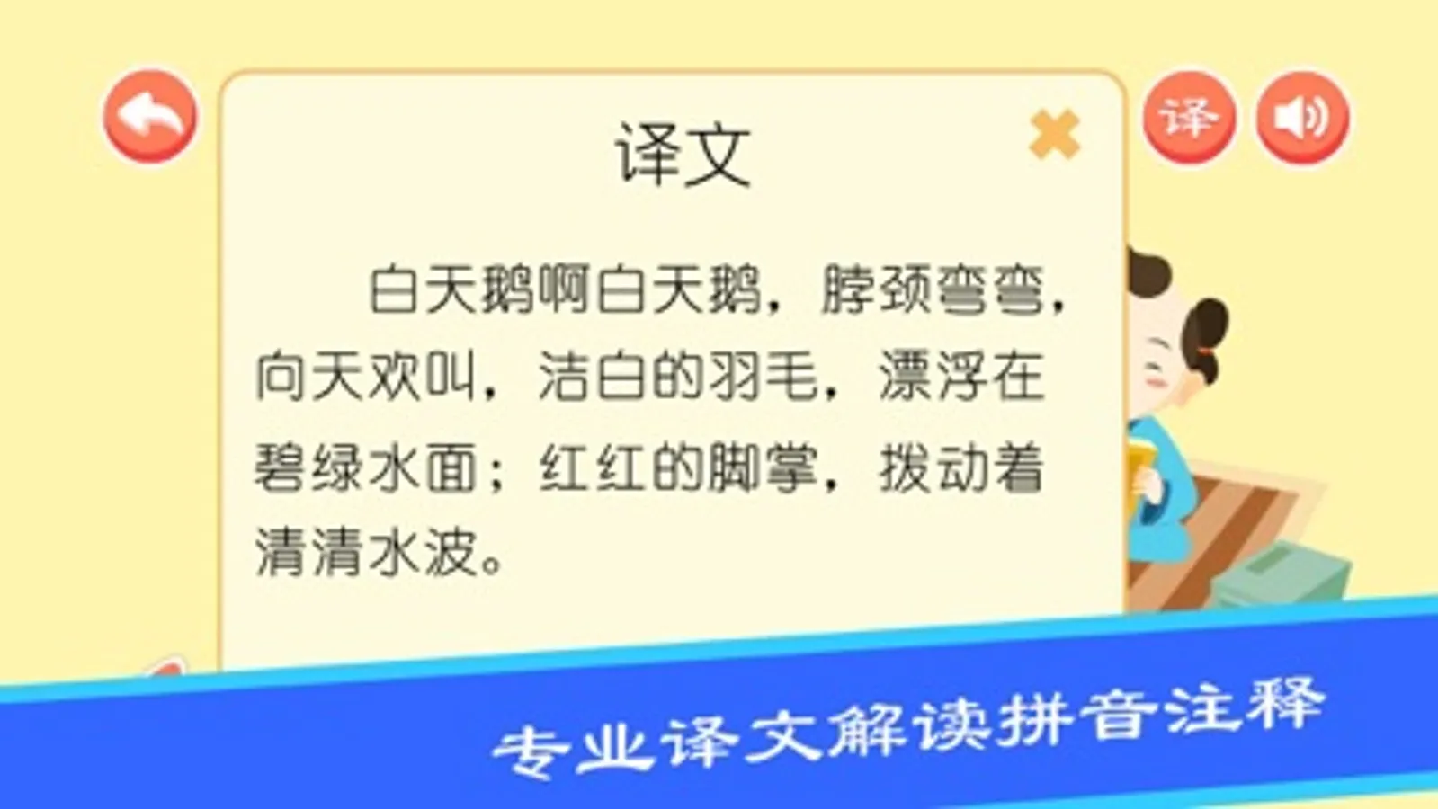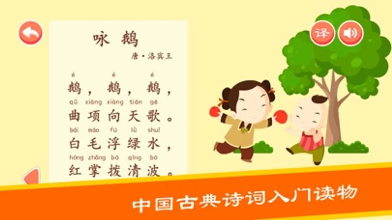 2.专业配音引导宝宝跟读、每首古诗都有文字+拼音。
