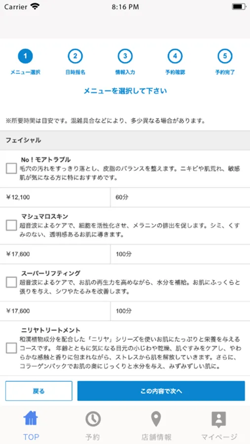 予約状況の確認やキャンセルがマイページ上から行えます。スタッフの登録が出来るので前もって担当者を登録しておけばマイページからスムーズな指名予約が可能です。