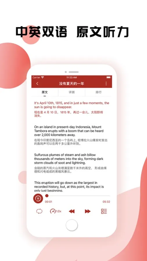 3. Click on the words you don't know in the original text, check the pronunciation and interpretation, and improve your vocabulary