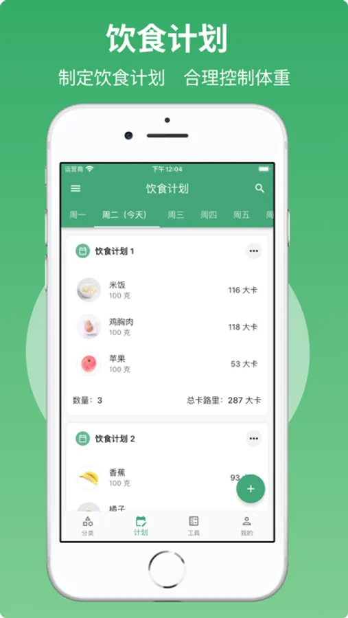 制定每日饮食计划,为您提供健康饮食管理,控制摄入食物热量,轻松管理每日饮食,健康饮食更方便。