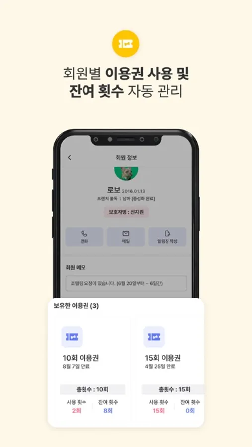●고객별 이용권 사용 및 잔여 횟수를 간편하게 확인할 수 있어요.