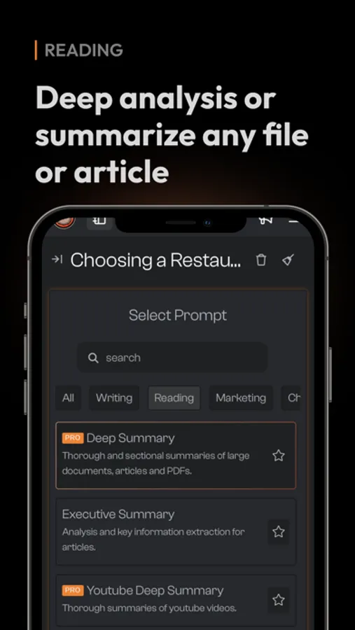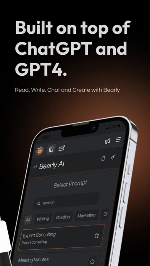 Custom Prompts: Bearly makes it super easy to tailor generative AI to your specific workflow - build your own custom prompt or choose from 50+ available in our prompt marketplace