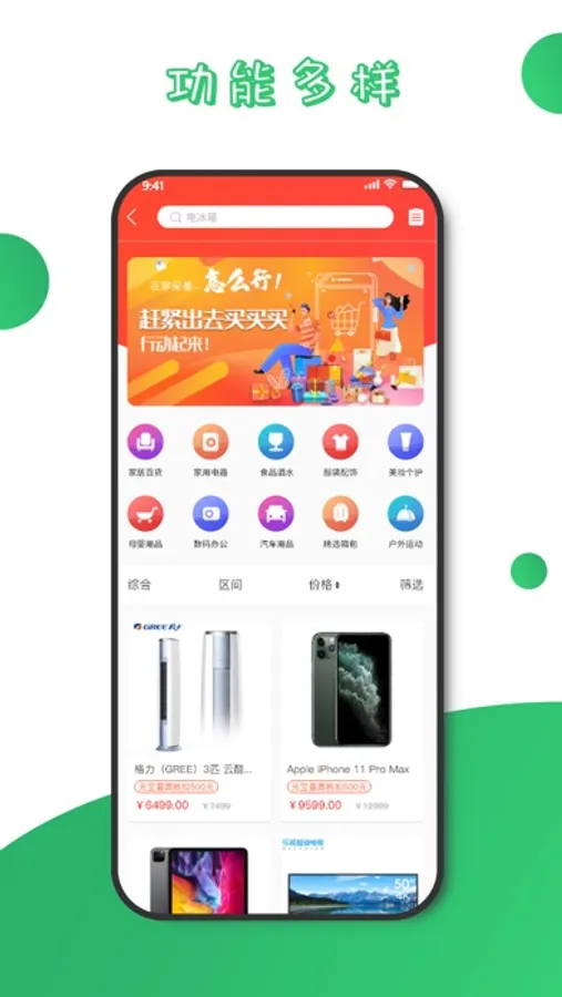 分为废旧衣物、手机数码、淘汰家电、书籍纸箱 四大回收种类,用户可在首页跳转指定种类进行精准下单!
