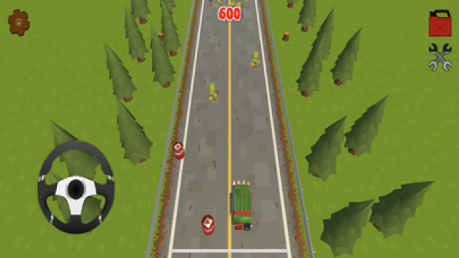 Your task is to drive your car well and avoid obstacles on the road. In addition, you must also hit the zombies around you to earn points. If you can successfully avoid obstacles and hit zombies, you will earn points that can be used to buy upgrades for your car.
