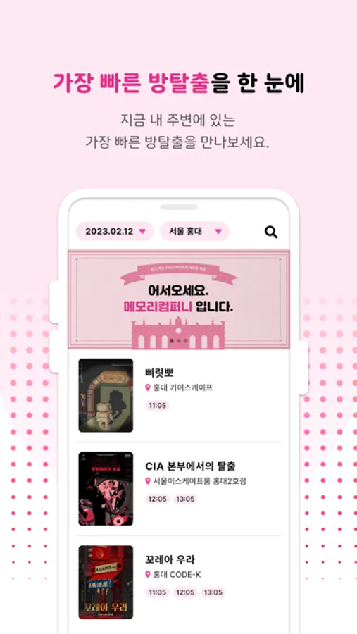 현재 예약가능한 방탈출을 빠르게 확인하고, 필터로 검색할 수 있습니다.