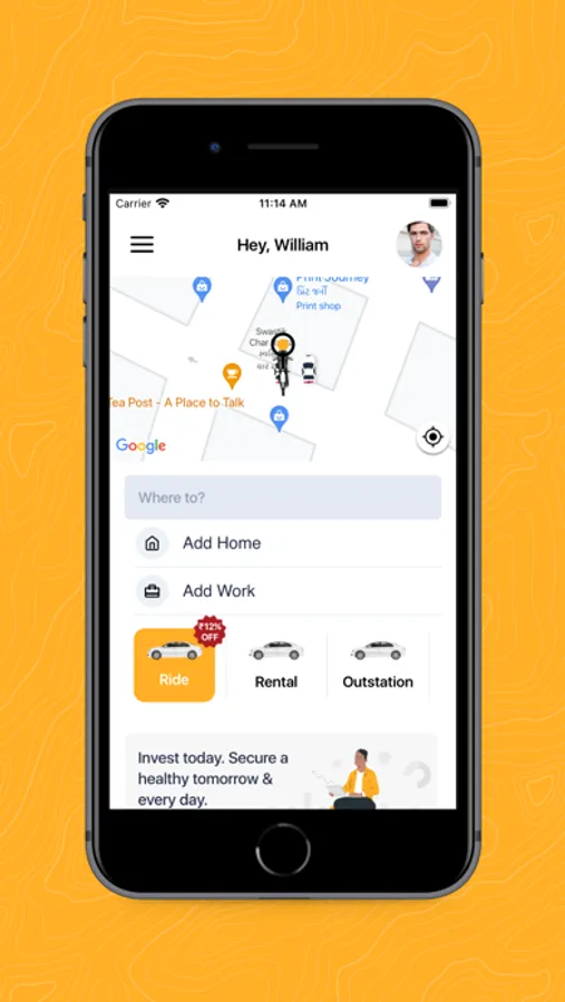 1. Set your pickup location (Eg: Home, Office, Gym, or your current location).