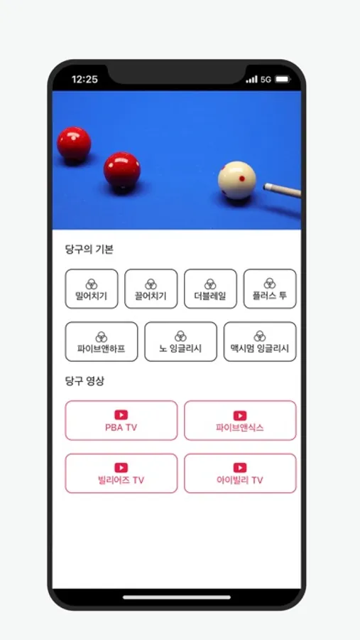 파이브앤하프 앱은 입문자를 위한 당구 시스템과 영상을 통해 정보를 얻을 수 있습니다.
