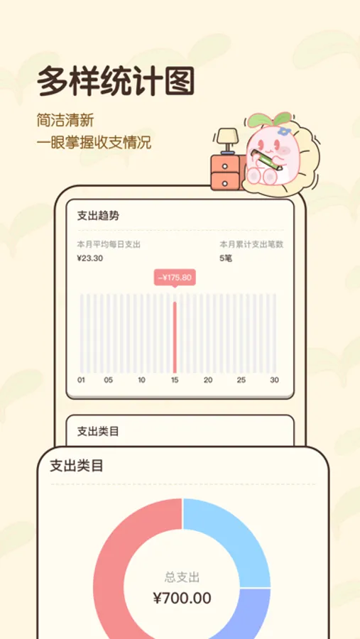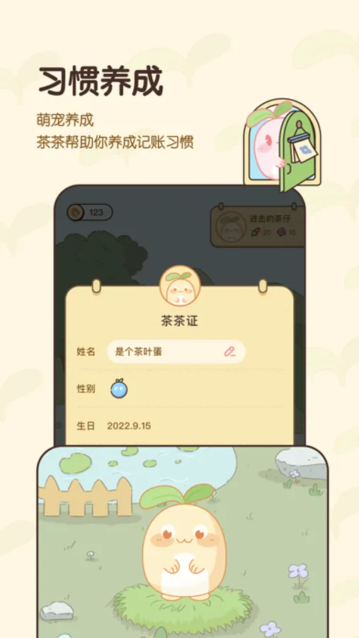 - 坚持记账获得的奖励可以用来装扮宠物,打造独一无二的茶茶。