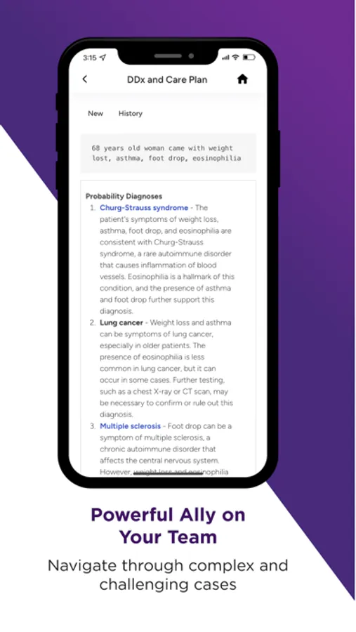 • Differential diagnosis: Quickly and accurately analyze patient symptoms and medical history to provide a list of potential diagnoses.