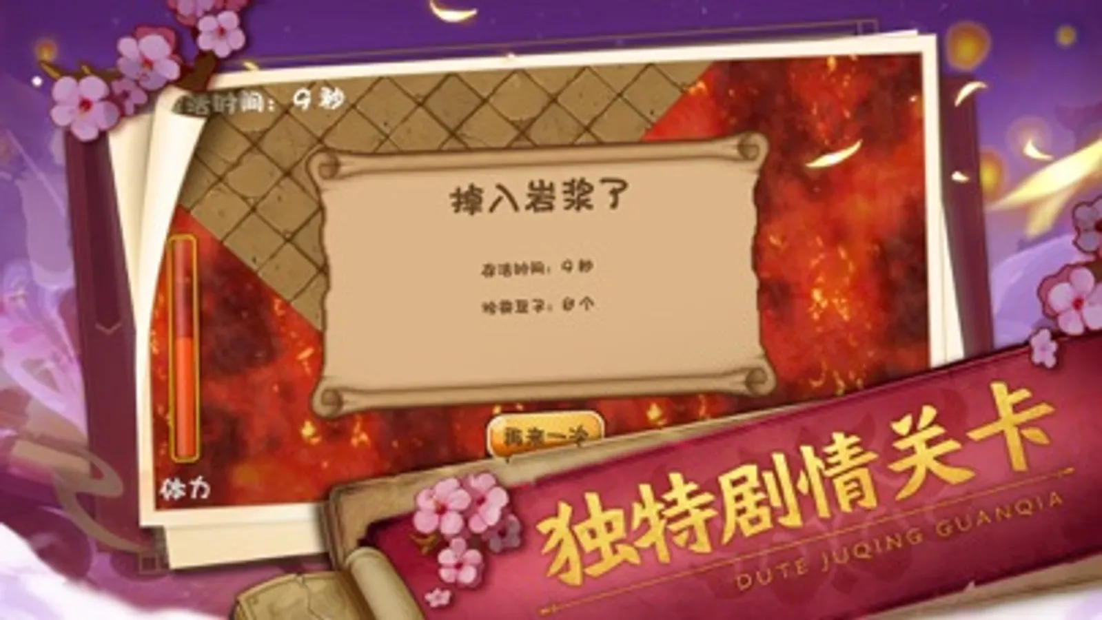 游戏简介:暴走联萌是一款轻松有趣的动作游戏,你需要控制你的角色在移动中躲避障碍物和陷阱,吃掉豆子来恢复体力。当你的体力消耗完毕或者掉入岩浆中,游戏就结束了。快来挑战吧!